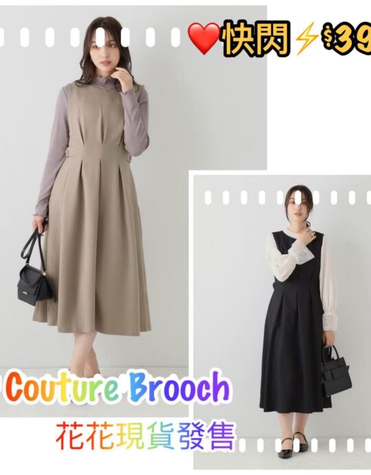 🇯🇵 新品 Couture Brooch 腰部收腰背心連身裙 508-59003 兩邊腰間有暗袋 有內裡 花粉最愛 黑/卡其色入