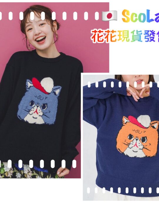 🇯🇵新品Scolar提花針織上衣 153725 戴著帽子貓咪圖案🐱 非常可愛 黑/藍 2色入