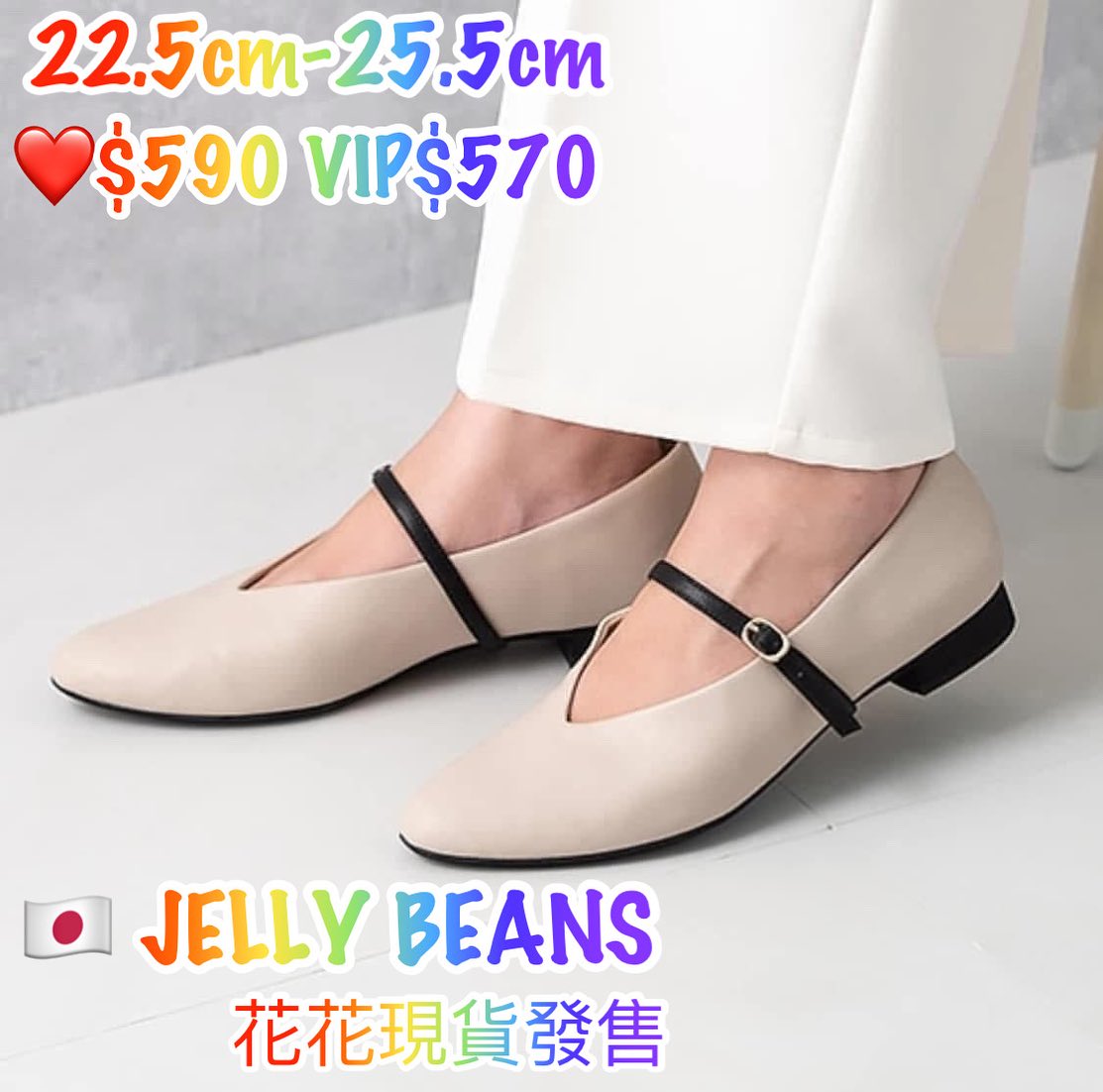 On Sale❤️$590 VIP$570 🇯🇵 新品 白兔仔🐰系列 Jelly Beans 2way 平底鞋 204-42979 1.5cm 平底 好輕身 有後踭兩邊cushion 貼 防刮腳系列 超厚鞋墊 非常好著 米白色入 正常碼 數量
