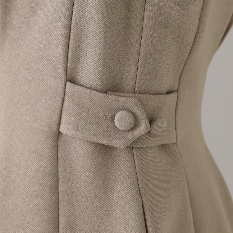 顏色 : 卡其色 / 黑色 尺碼 : M 尺寸 : C35” W28” H42” L45” ~重點~ 腰部拉環可用紐扣進行兩段式調整。 內搭T卹、襯衫或針織衫,可長時間穿著。 圓領設計與夾克和開襟衫相得益彰,優雅的 造型也非常適合通勤。