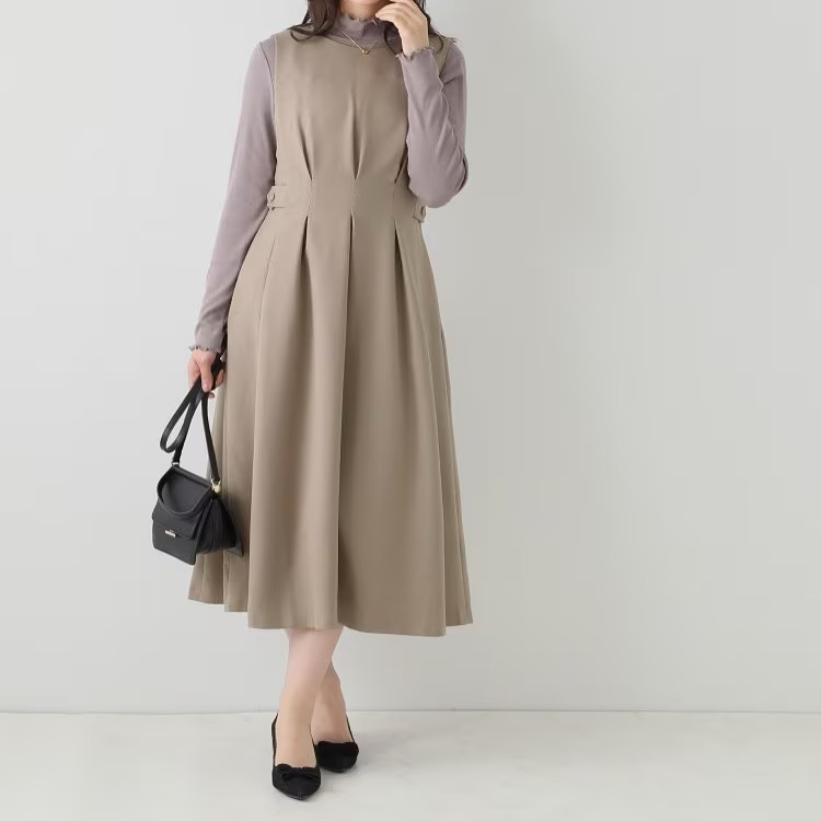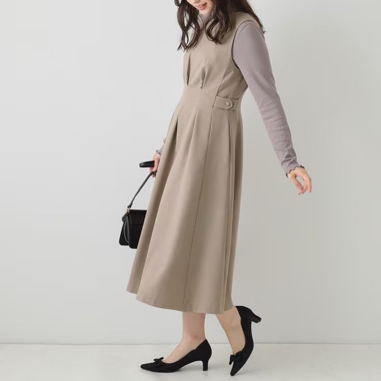 🇯🇵 新品 Couture Brooch 腰部收腰背心連身裙 508-59003 兩邊腰間有暗袋 有內裡 花粉最愛 黑/卡其色入
