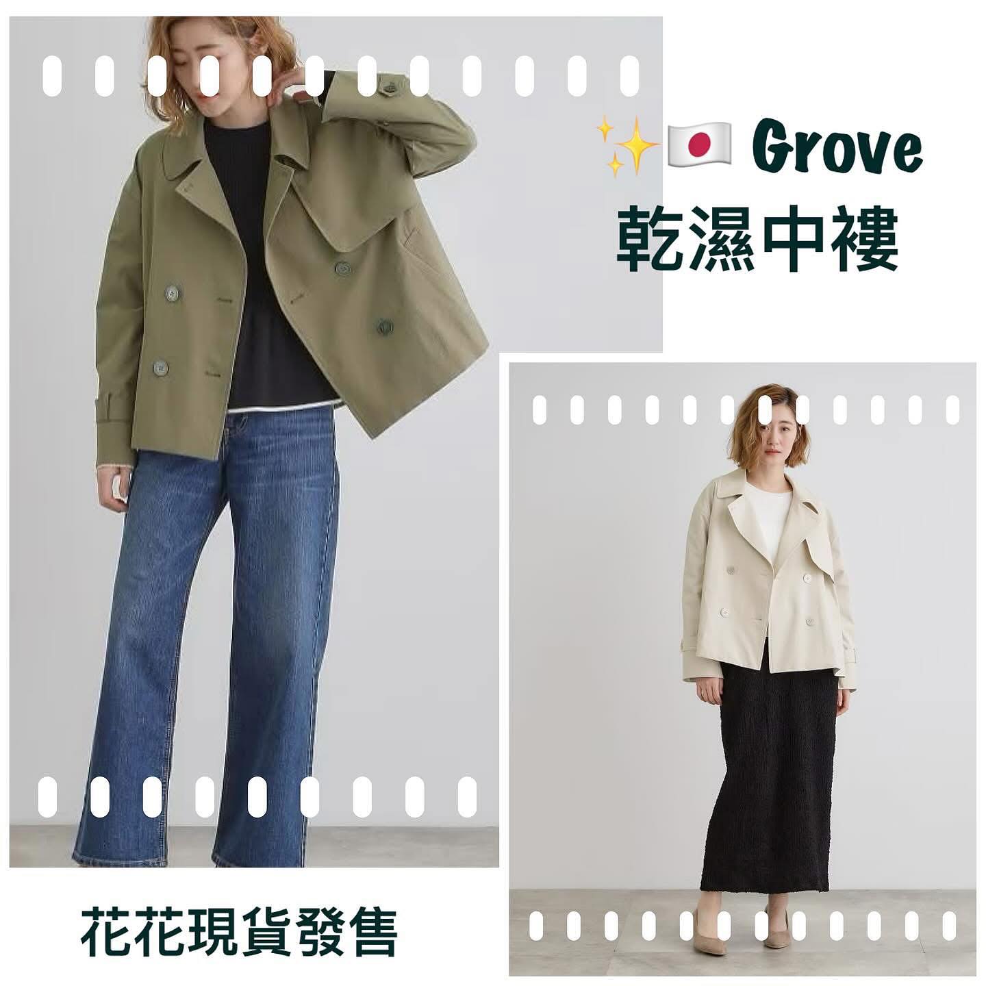🇯🇵 新品 Grove 開叉拉格蘭短風衣 768-42015 綠 / 米 2色入