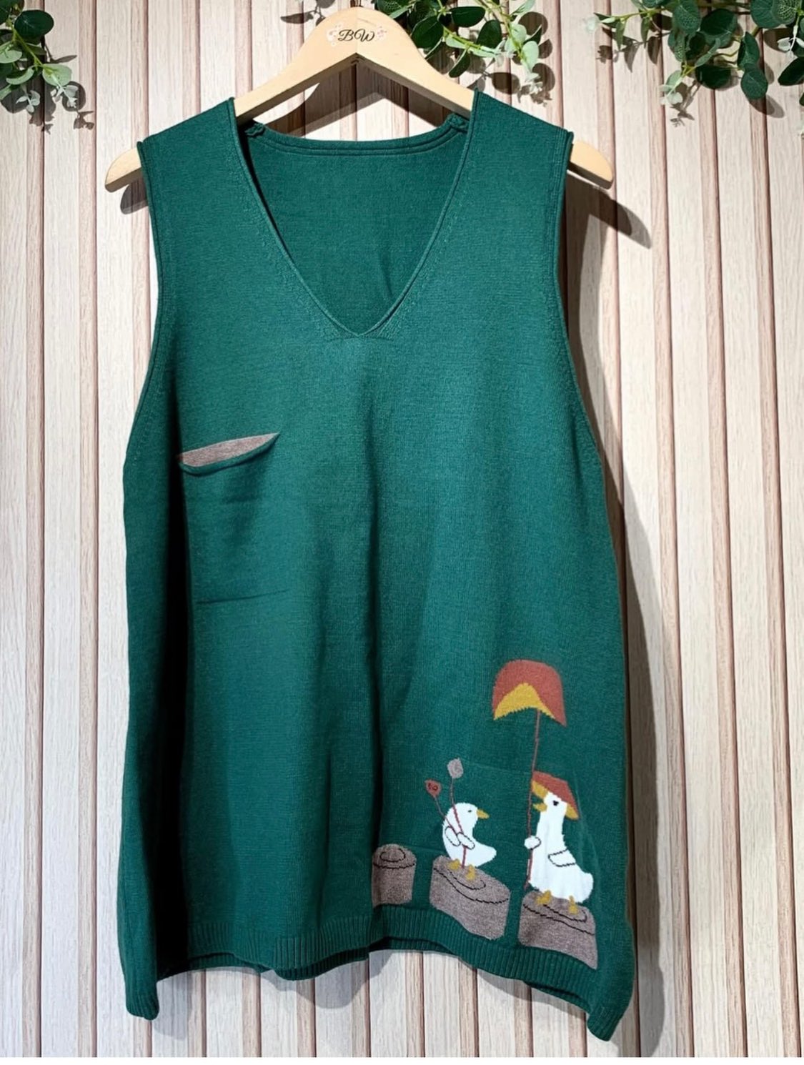 On Sale❤️快閃⚡️$199 🇯🇵 新品 ACROSS 薄針織🧶長身背心 10897 刺繡🪡天鵝🦢圖案漂亮 好彈性 綠色入