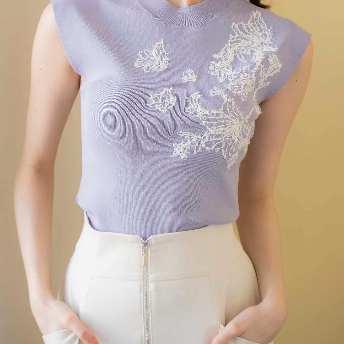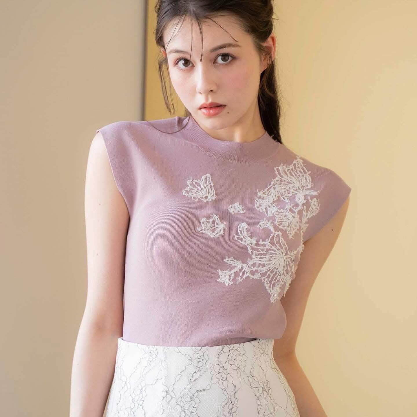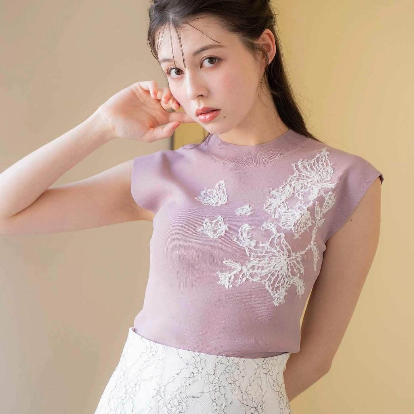 On Sale ❤️快閃⚡️$450 VIP$430 🇯🇵 新品 Noela 彈性針織上衣 5531041 併亮片花花刺繡圖案 非常漂亮 粉紅/芋紫 2色入