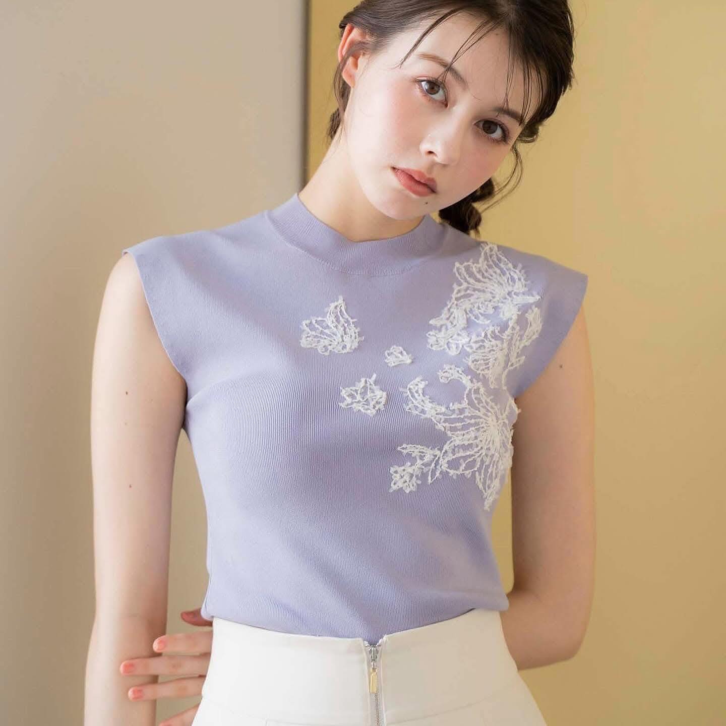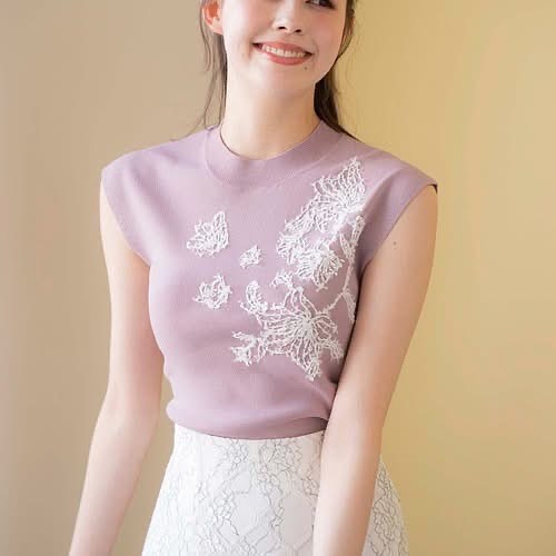 On Sale ❤️快閃⚡️$450 VIP$430 🇯🇵 新品 Noela 彈性針織上衣 5531041 併亮片花花刺繡圖案 非常漂亮 粉紅/芋紫 2色入 數量