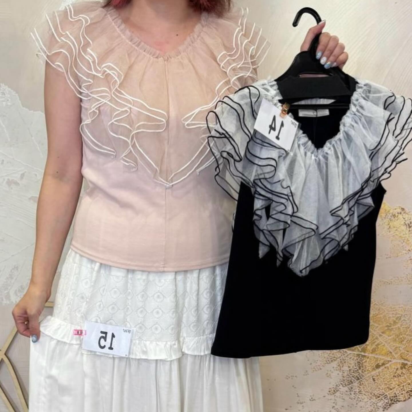 On Sale ❤️快閃⚡️$350 VIP$330 🇯🇵 新品 Lillian Carat 好彈性薄棉上衣 45321366 好靚包邊莎莎ruffles 非常漂亮 粉紅/黑 2色入
