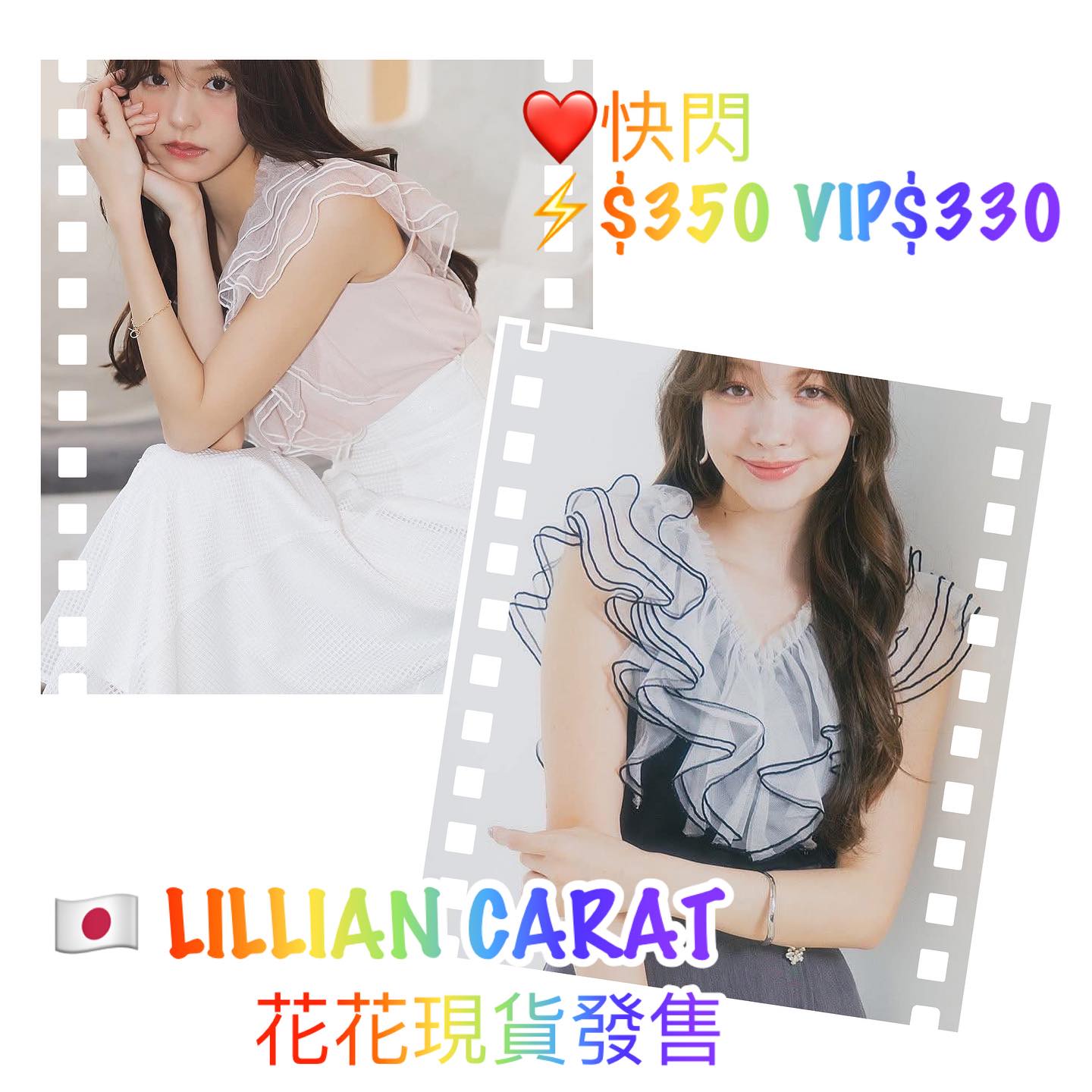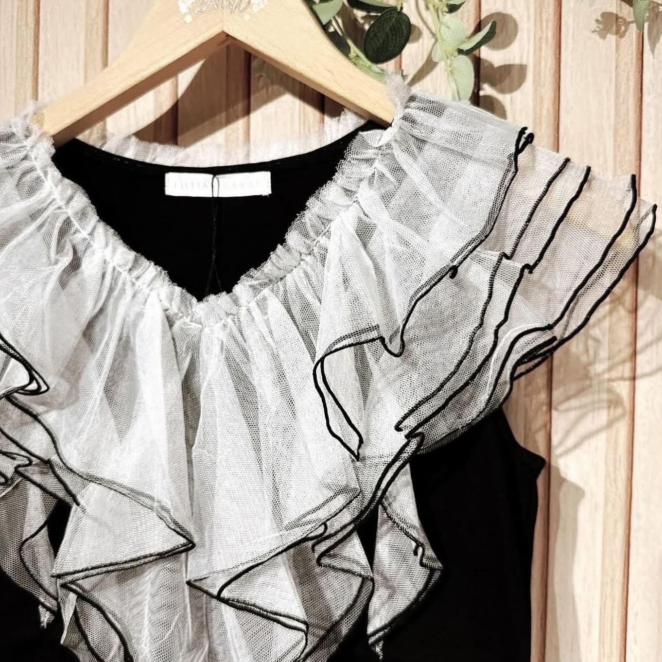 / On Sale ❤️快閃⚡️$350 VIP$330 🇯🇵 新品 Lillian Carat 好彈性薄棉上衣 45321366 好靚包邊莎莎ruffles 非常漂亮 粉紅/黑 2色入
