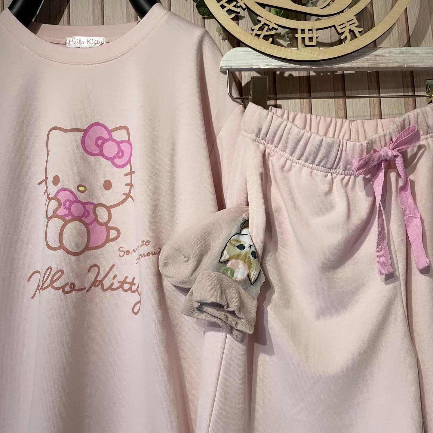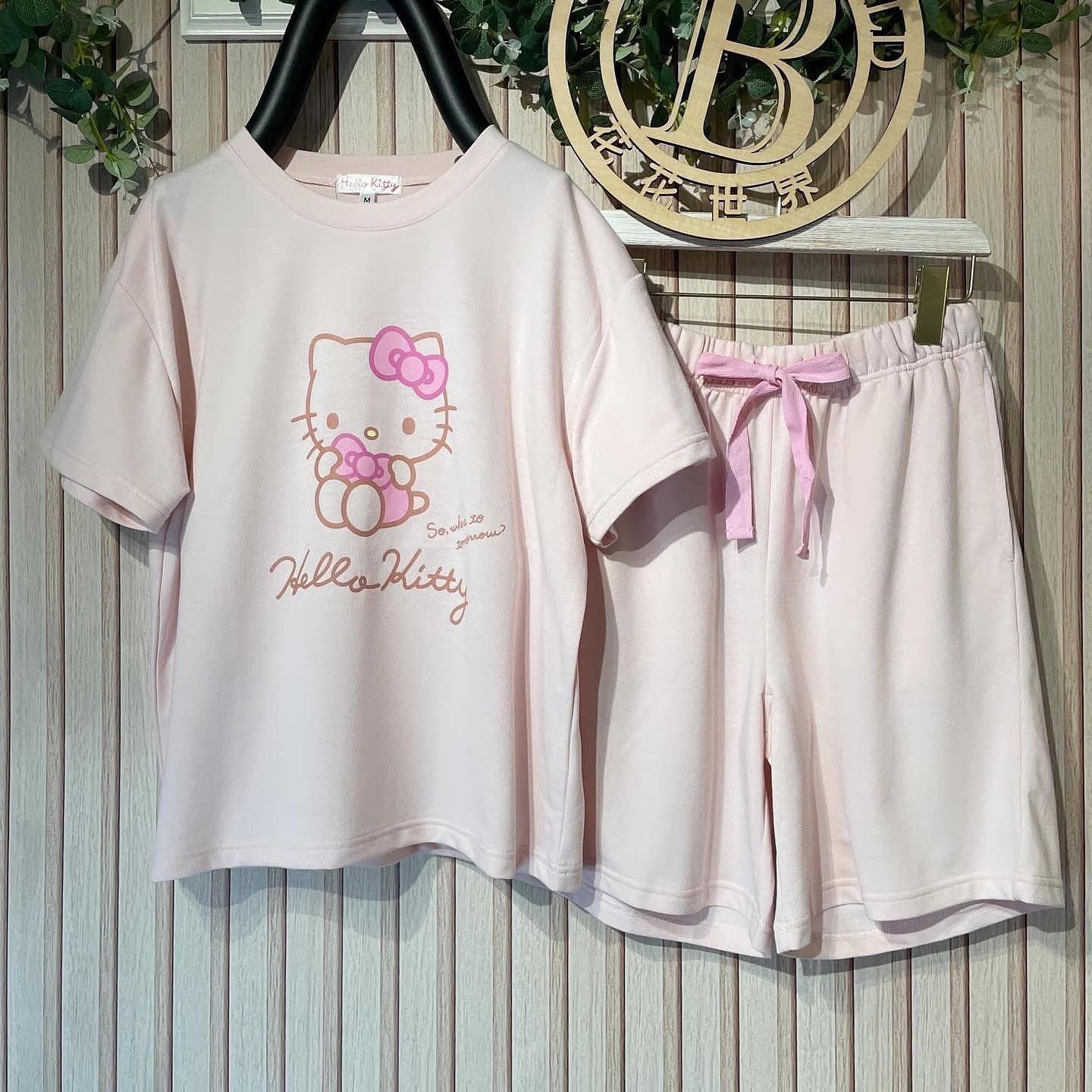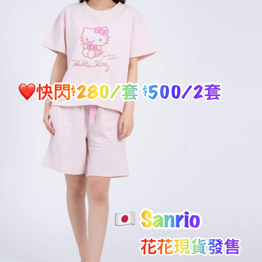 On Sale ❤️$299 VIP$280 $500/2套 🇯🇵 新品 Sarion 棉料睡衣套裝 短袖衫連橡筋腰短褲 褲款有綁帶可以調較鬆緊 褲款兩邊腰間有暗袋 花粉最愛 SAN-1792 粉紅Hello Kitty