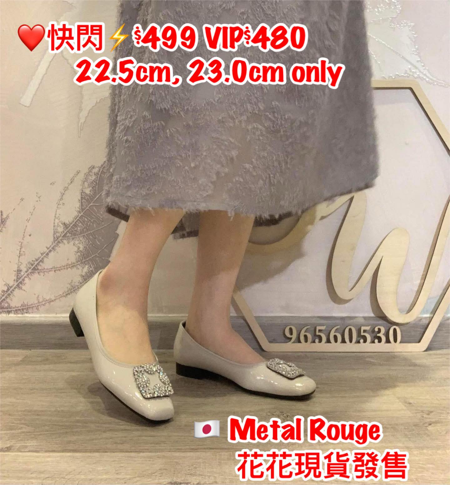 On Sale ❤️快閃⚡️$499 VIP$480 🇯🇵 新品 日本制 Metal Rouge 方頭 2cm 高平底鞋🥿 MR7700 Bling 💍 Bling 💍 閃爆大方扣漂亮 漆皮易打理 內裡全包棉布 非常好著 足🦶碼 偏大少少🤏 奶白淺灰色入